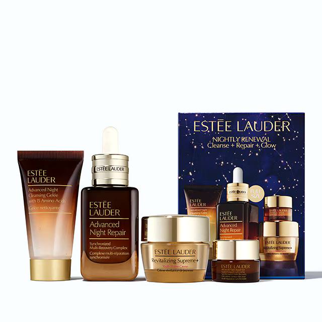 Усе для красивої шкіри в одному наборі. Косметичний набір Estée Lauder Nightly Renewal Cleanse + Repair + Glow Set містить не один, а декілька продуктів, які стануть основою або доповнять ваш щоденний догляд, тим самим потішивши вас або ваших близьких у якості подарунка.