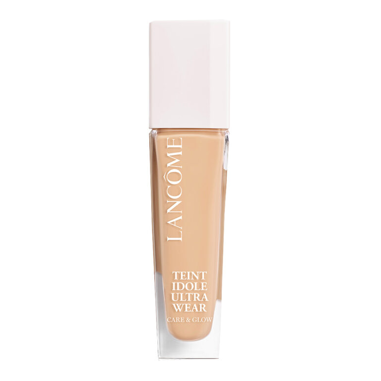 Teint Idole Ultra Wear Care&Glow від Lancome— це тональна основа-сироватка, яка діє 24 години, має середній ступінь покриття та захист від UVA випромінювання SPF 25. Вона зволожує та розгладжує шкіру, надаючи їй природного сяйва.